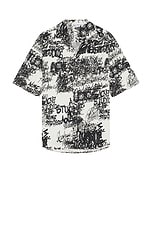 Bottega Veneta Postcard Print Silk Shantung Short Sleeve Shirt in Pecan & Dove
