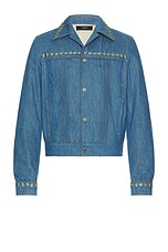 Amiri Crystal Pleated Cadet Jacket in Retro Indigo