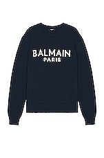BALMAIN Merino Crewneck in Bleu Marine & Naturel