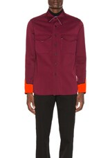CALVIN KLEIN 205W39NYC Contrast Sleeve Button Down Shirt in Mulberry & Orange & Red