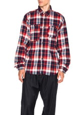 Engineered Garments Plaid Flannel Work Shirt in Navy, Red & Turquoise