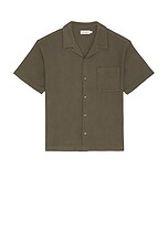 FRAME Jacquard Relaxed Camp Collared Shirt in Dark Sage