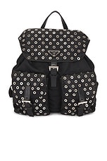FWRD Renew Prada Grommet Embellished Tessuto Backpack in Black