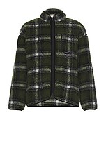 Gramicci Shadow Plaid Sherpa Jacket in Olive Shadow Plaid