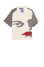 KidSuper Patchwork Face Linen Camp Shirt in Natural & Brown