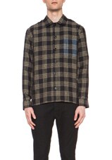 Marc Jacobs Button Down Linen Shirt in Olive Check