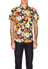 Naked & Famous Denim Short Sleeve Easy Shirt in Flower Painting & Orange