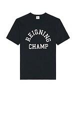 Reigning Champ Lightweight Jersey Arch Logo T-Shirt in Navy & White