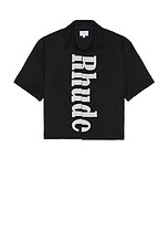 Rhude Center Logo Button Up Shirt in Black & White