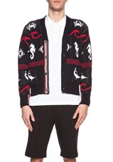 Thom Browne Fair Isle Cotton Cardigan in Navy, Red & White