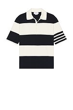 Thom Browne Rugby Stripe Short Sleeve Polo in Navy & White