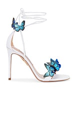 Aquazzura Papillon 105 Sandal in White & Blue Multi