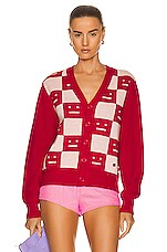 Acne Studios Checkerboard Cardigan in Deep Red & Faded Pink Melange