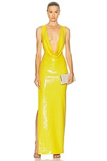 Alex Perry Draped Cowl Column Dress in Yellow