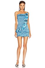 AREA Ruched Ruffle Dress in Cerulean
