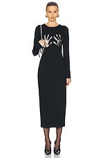 AREA Handprint Long Sleeve Midi Dress in Black