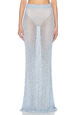 AREA Sequin Crochet Maxi Skirt in Light Blue