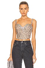 AREA Heart Leopard Crystal Trim Top in Brown Multi