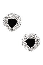 Alessandra Rich Crystal and Black Enamel Heart Earrings in Crystal & Silver