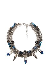 Assad Mounser Eno Rhodium Plated Collar Necklace in Navy