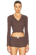 Alexander Wang Long Sleeve Waffle Cardigan in Chocolate Brown