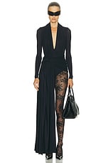 David Koma V-Neck Long Sleeve Mesh Gown in Black