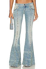 R13 Overflow Boy Flare in Mire Blue Stretch