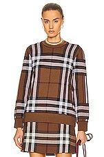 Burberry Fallon Patchwork Check Crewneck Sweater in Dark Birch Brown