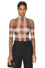 Burberry Long Sleeve Bodysuit in Dark Birch Brown Check