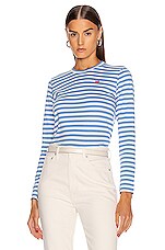 COMME des GARCONS PLAY Striped Small Emblem Tee in Blue