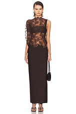 Christopher Esber Mahara Floating Lace Column Dress in Umber