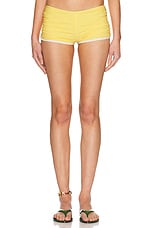 Christopher Esber Oasis Ruched Swim Boyshort Bikini Bottom in Zest & White