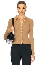 Moncler Long Sleeve Polo Top in Deep Brown