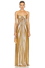 The Sei Draped Strapless Gown in Antique Gold