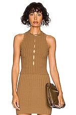 Eterne High Neck Fitted Tank Top in Chocolate