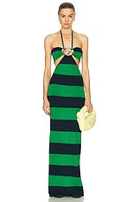 Coperni Knitted Striped Halter Dress in Green & Blue
