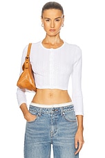LESET Pointelle Crop Cardigan in White