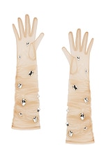 David Koma All Over Crystal Embroidered Gloves in Beige & Silver