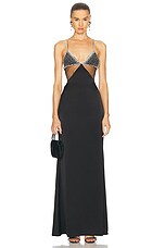 David Koma Triangle Crystal Bra Embroidery Gown in Black & Silver
