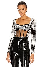 David Koma Houndstooth Net Corset Bodysuit in Black & White