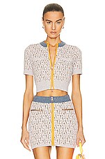 Miu Miu Short Sleeve Sweater in Naturale & Bluette