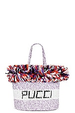 Emilio Pucci Large Rafia Tote Bag in Bianco, Lilla & Nero