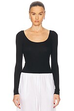Enza Costa Lurex Jersey Long Sleeve Slash Top in Black