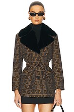 FWRD Renew Fendi Zucca Belted Coat in Brown