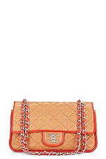 FWRD Renew Chanel Quilted Lambskin Double Flap Chain Shoulder Bag in Orange