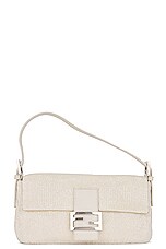 FWRD Renew Fendi Beaded Baguette Shoulder Bag in White