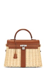 FWRD Renew Hermes Wicker Kelly Picnic 35 Handbag in Fauve