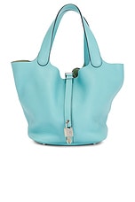 FWRD Renew Hermes Taurillon Clemence Picotin Lock 22 Handbag in Blue Atoll