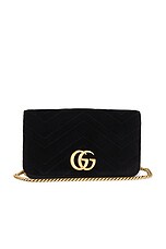 FWRD Renew Gucci Velvet GG Marmont Wallet On Chain in Black