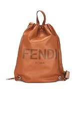 FWRD Renew Fendi Logo Embossed Drawstring Backpack in Brown